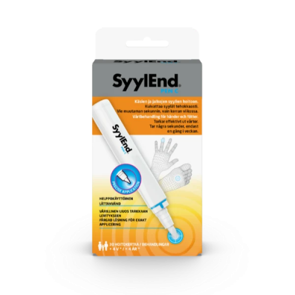 Ergonominen SyylEnd® PEN C on kehitetty helpottamaan syylien poistoa. Applikaattori annostelee automaattisesti pienen määrän, kun kärki painetaan syylää vasten. Levitä vain kerran viikossa, kunnes syylä on kokonaan kadonnut.